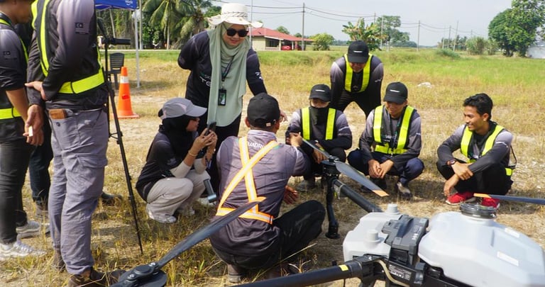 Operasi drone pertanian berskala besar melalui teknologi dan koordinasi